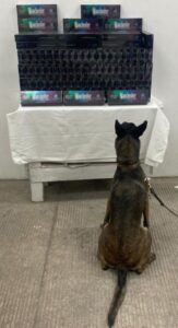El ejemplar canino se interesó por una caja de cartón, frente a la cual mostró una alerta ante la posible presencia de algún objeto, dinero o sustancia ilícita.