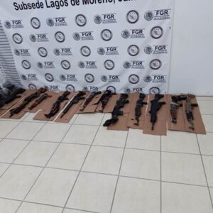 TEOCALTICHE, JAL.- El agente del Ministerio Público de la Fiscalía General de la República (FGR) en Jalisco integra una carpeta de investigación contra quien o quienes resulten responsables por el delito de violación a la Ley Federal de Armas de Fuego y Explosivos, tras el aseguramiento de armas de fuego, cartuchos, cargadores y vehículos en esta cabecera municipal.