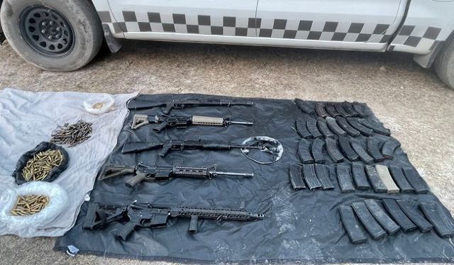 Al inspeccionar minuciosamente las bolsas negras localizaron 5 armas largas, 35 cargadores y 810 cartuchos útiles de distintos calibres.