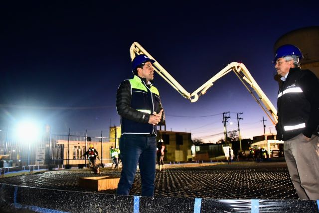 AGUASCALIENTES, AGS.- A primera hora de este viernes, el presidente municipal Leo Montañez encabezó la supervisión de los trabajos de colado del tanque vidriado Reserva Nororiente, que se está construyendo en el fraccionamiento Mirador de las Culturas II y que tendrá una capacidad de almacenamiento de 5 millones de litros de agua, en beneficio de 90 mil habitantes de colonias de la zona oriente de la capital.