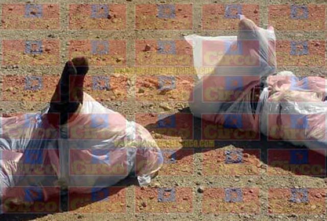 Los dos cuerpos estaban tirados en medio del camino, envueltos en bolsas plásticas en color blanco, amarrados con cinta adhesiva en color gris.