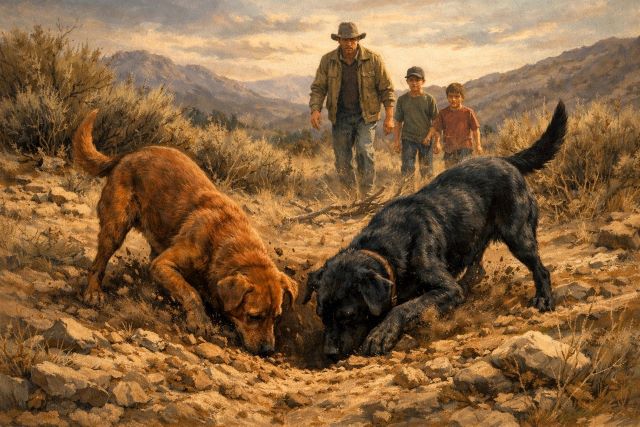 De acuerdo con el testimonio del padre de familia, mientras caminaban por el monte dos perros que los acompañaban se alejaron y comenzaron a excavar en un punto del terreno.