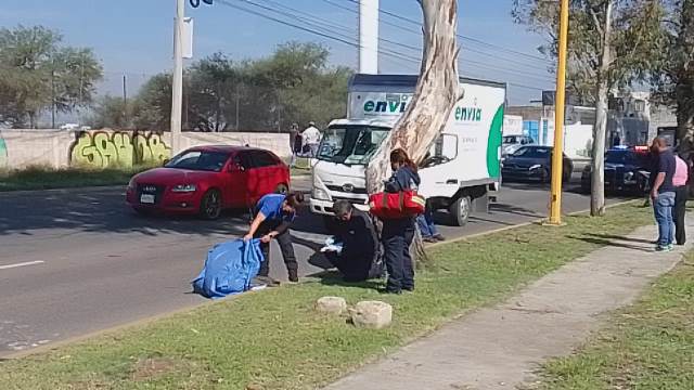 El peatón trató de cruzar el segundo anillo de sur a norte, pero en el carril izquierdo, pegado al camellón central, fue impactado por un camión Hino, propiedad de la empresa de paquetería “Envía”, con placas de circulación LE-89654, que era desplazado del Infonavit Pirules a la avenida Agostadero.