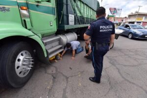 También llegaron paramédicos municipales en la ambulancia UE-52 y del Grupo de Operaciones Aéreas del helicóptero Halcón 1 de la Secretaría de Seguridad Pública Municipal, que encontraron a Juan debajo del camión, por lo que comenzaron a brindarle los primeros auxilios.