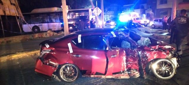 Derivado de lo anterior, el vehículo Nissan perdió el control e impactó su frontal izquierda con un señalamiento preventivo y posteriormente contra un poste de concreto de la CFE.