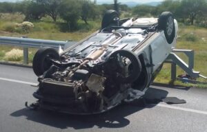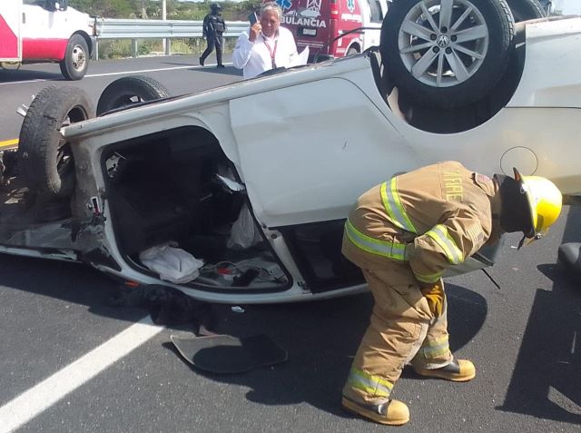 Luego de un reporte al servicio de emergencias 911, al lugar acudieron paramédicos, rescatistas y bomberos de la Coordinación Estatal de Protección Civil y de Guadalupe, que encontraron volcado sobre su toldo un Volkswagen, en color blanco y con placas de circulación de la Ciudad de México.