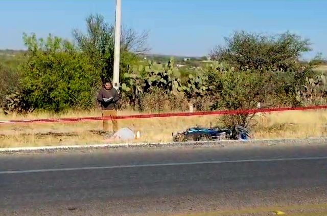 ASIENTOS, AGS.- Un motociclista perdió la vida tras de que sufrió una fuerte caída de su “jaca de acero” en el municipio de Asientos.