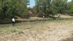 A su arribo localizaron efectivamente a unos metros del caudal del Río San Pedro y colgada de la rama de un árbol a una persona de sexo masculino que vestía una playera en color negro, pantalones en color negro, así como lo que parece ser un bóxer en color blanco, además de zapatos de trabajo, de entre 30 a 35 años de edad, el cual ya carecía de signos vitales.