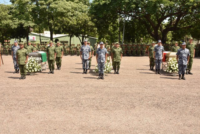 CIUDAD DE MÉXICO.- El sábado 1 de octubre, en Culiacán, Sinaloa, se llevó a cabo la ceremonia de homenaje póstumo a elementos caídos en el cumplimiento a su deber, debido a los hechos ocurridos en la madrugada del viernes 30 de septiembre en el poblado de Bacacoragua, municipio de Badiraguato, Sinaloa, donde personal militar fue agredido con disparos de arma de fuego por un grupo de la delincuencia organizada, de la cual lamentablemente fallecieron 5 militares.