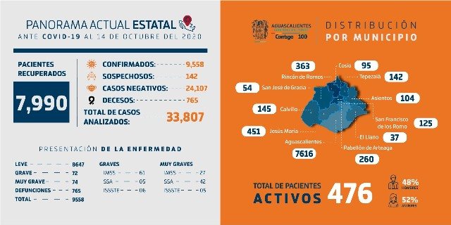 Por otro lado, se informó que son 476 los pacientes con el virus activo en su cuerpo, por lo que pasan un periodo de cuarentena. Se ha acumulado un total de 9 mil 558 casos positivos, de los cuales 7 mil 990 han superado el virus satisfactoriamente.