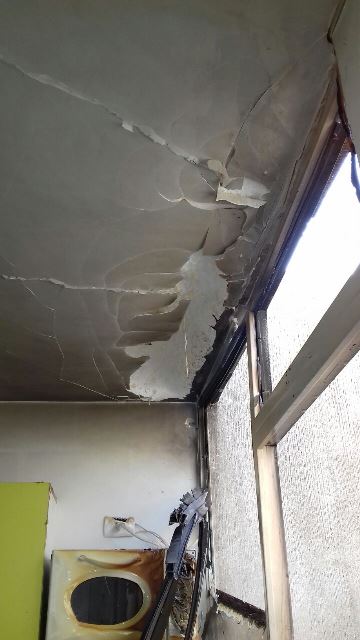 Además, en la cocina resultó afectado un horno de microondas y otros objetos, entre ellos un garrafón de plástico, apreciándose daños en el techo y las paredes, mientras que en la sala, resultaron dañados un sillón y una bocina.