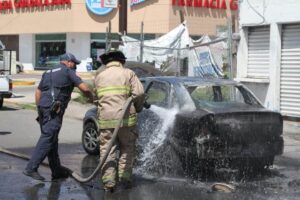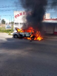 AGUASCALIENTES, AGS.- Gran susto se llevó una mujer luego de que al conducir su automóvil repentinamente comenzó a incendiarse y las llamas lo consumieron por completo.