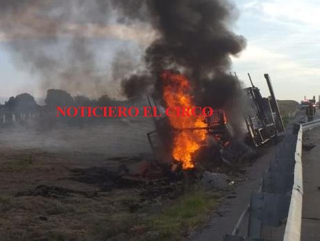 LAGOS DE MORENO, JAL.- Sobre la autopista Lagos de Moreno-San Luis Potosí se incendió un tráiler tipo “madrina”, aunque al momento del siniestro no transportaba otros vehículos.
