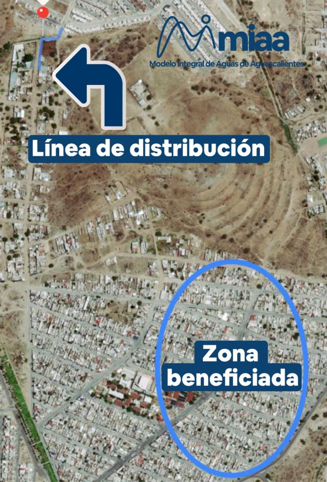 Jesús Vallín, director general de MIAA, explicó que se trabaja en la construcción en dos interconexiones de las líneas de distribución del pozo 154, ubicado en el fraccionamiento Villas de Don Antonio, y del pozo 146, ubicado en Claustros de Loma Dorada, para llevar el agua al fraccionamiento Benito Palomino Dena y alcanzar una mayor cobertura del servicio de agua potable.