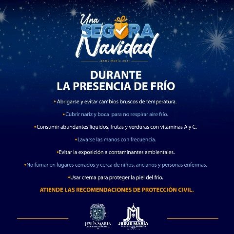 JESÚS MARÍA, AGS.- En esta temporada invernal, el Departamento de Protección Civil hace unas recomendaciones con el fin de salvaguardar la integridad y salud de las familias de Jesús María, particularmente de las personas vulnerables o en situación de calle.