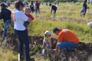 En la jornada de reforestación que se llevó a cabo este día, más de 100 personas participaron en la plantación de mezquites y guaches a lo largo de 5 mil metros cuadrados, de un total de 64 mil, en un suelo con cobertura de arcilla, limo y migajón, totalmente apto para que las plantas perduren con el paso del tiempo.