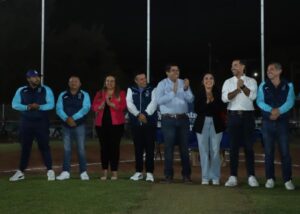 El evento fue encabezado por el presidente municipal César Medina, quien también inauguró la Liga 2025 con el lanzamiento de la primera bola, marcando el inicio de una nueva temporada.
