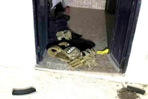 La fachada de la finca presentaba impactos de bala y en el interior, en el piso, se descubrieron chalecos tácticos antibalas con la leyenda de la Marina.