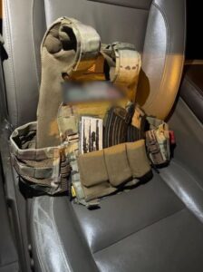 Dentro de la X-Trail encontraron dos cargadores para rifle de asalto AK-47 (“cuernos de chivo”) con cuatro cartuchos, un cargador para rifle de asalto AR-15 con cinco cartuchos, una cubeta con poncha llantas y un chaleco táctico con dos placas balísticas, mientras que en la Traverse se halló un arma de fuego larga calibre .223 con un cargador y ocho cartuchos útiles.