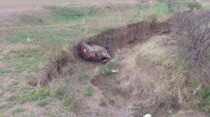 El vehículo cayó a un desnivel y comenzó a volcarse de forma espectacular, dando varias volteretas.