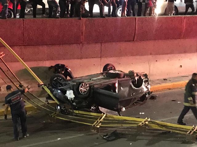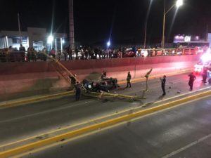 AGUASCALIENTES, AGS.- Impresionante accidente ocurrió al norte de la capital, luego de que un automóvil cayó desde lo alto de un puente vehicular, por lo que la mujer que lo conducía sufrió algunas lesiones y fue llevada al Seguro Social a recibir atención médica.