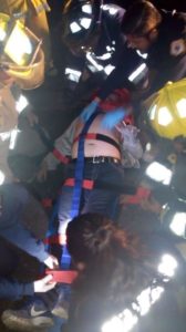 Algunas personas reportaron el incidente a los servicios de emergencia, por lo que al lugar acudieron policías preventivos y viales para tomar cartas en el asunto, además de elementos del cuerpo de Bomberos Municipales en las unidades UE-01, UE-15, UE-16 y UE-31 al mando del comandante José Franco Toscano, que se encargaron de rescatar al joven.