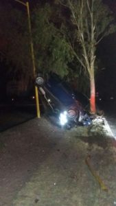 AGUASCALIENTES, AGS.- Un joven resultó lesionado tras de que protagonizó un aparatoso accidente al volante de su automóvil, en el que se impactó contra un poste de alumbrado público y un árbol y la unidad de motor quedó en forma vertical.