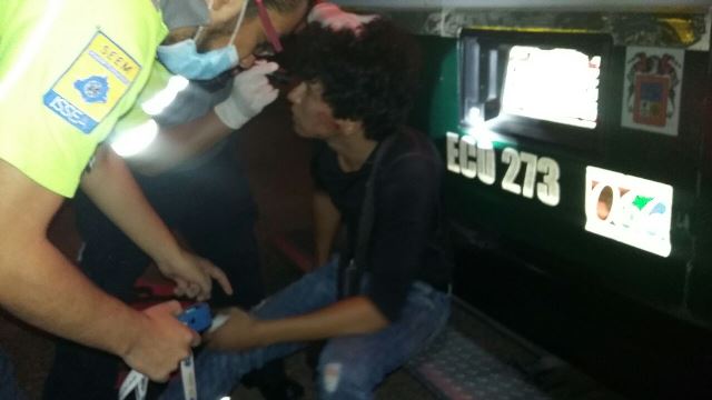 Asimismo arribaron paramédicos del ISSEA en la ambulancia ECO-273, quienes se encontraron con el afectado, al cual le brindaron los primeros auxilios, considerando en ese momento que no requería de ser llevado a un hospital.