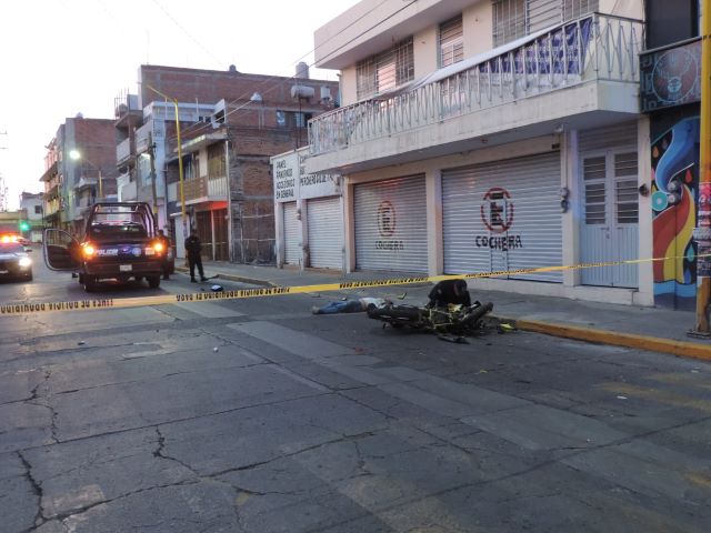 AGUASCALIENTES, AGS.- Un joven motociclista que circulaba en sentido contrario por calles de la zona Centro murió tras de que se estrelló contra una patrulla de la Secretaría de Seguridad Pública del Estado.