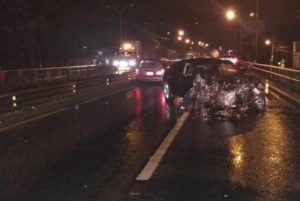 - Además, el carro chocó contra un muro de contención y el chofer huyó