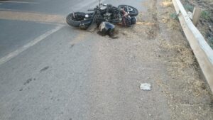Debido a ello, cayó de la unidad y salió eyectado fuera de la cinta asfáltica, mientras que la motocicleta quedó tirada en la carretera.