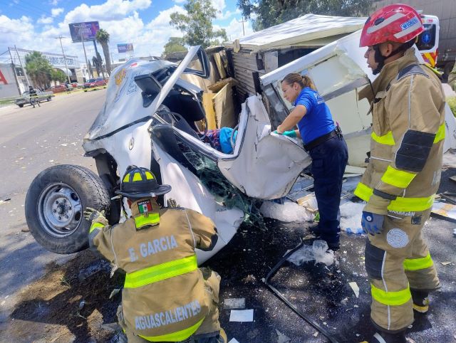 AGUASCALIENTES, AGS.- Fatal accidente se registró sobre la carretera federal 45 Sur y el cual le costó la vida a un joven trabajador de una empresa de hielo, que en la camioneta a su cargo fue chocado por un tractocamión y terminó estrellándose contra un árbol y volcándose.