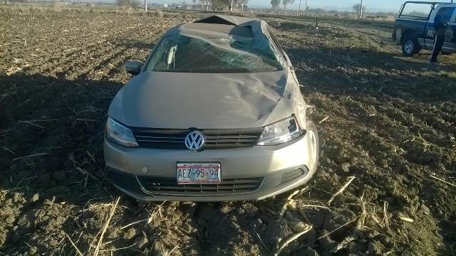 El VW Jetta quedó dañado de su carrocería, pese a lo cual el joven operador solamente sufrió algunos golpes en diferentes partes del cuerpo.