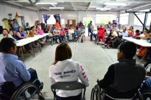 AGUASCALIENTES, AGS.- Con la firme intención de escuchar sus necesidades, propuestas y hacerlos participes en la construcción de un Aguascalientes incluyente, Tere Jiménez mantuvo un encuentro con integrantes del Consejo Estatal de personas con Discapacidad, con quienes se comprometió a seguir trabajando para transformar la capital en una ciudad amigable, donde se cumplan a cabalidad los derechos de este sector.