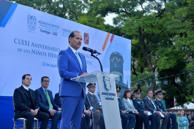 AGUASCALIENTES, AGS.- La educación es la causa por la que México debe luchar ante las exigencias del siglo XXI, así lo señaló el gobernador Martín Orozco Sandoval, al encabezar la ceremonia conmemorativa del 171 Aniversario de la Gesta Heroica de los Niños Héroes de Chapultepec.