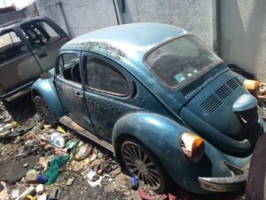 - Partes de un vehículo Volkswagen Sedán, color azul y con reporte de robo