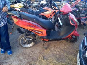 - Italika tipo motoneta, color rojo con negro, con placas de circulación ADD59 del Estado de Aguascalientes y cuenta con alteraciones en sus números de serie