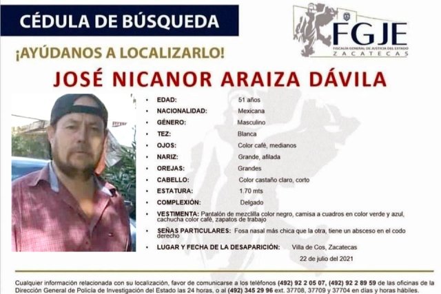 Al conocerse de su “levantón”, la Comisión Local de Búsqueda de Personas del Estado de Zacatecas, la Fiscalía General de Justicia, el Ejército Mexicano y la Guardia Nacional desplegaron un operativo para tratar de localizarlo, pero no tuvieron éxito.