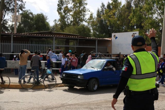 El secretario de Seguridad Pública y Vialidad de Jesús María, Crispín Jesús Orozco, informó que para que los estudiantes regresen a clases con tranquilidad y sin mayores contratiempos, personal operativo de la corporación que encabeza permanecerá en el exterior de los planteles educativos con la finalidad de facilitar el flujo ordenado de vehículos en las horas de entrada y salida escolar; además, brindar apoyo para el cruce seguro de los estudiantes y así minimizar el riesgo de accidentes.