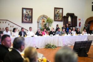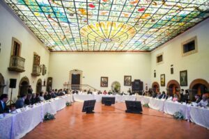 AGUASCALIENTES, AGS.- La gobernadora Tere Jiménez encabezó la LXXIV Asamblea Plenaria de la Mesa Ciudadana de Seguridad y Justicia, donde llamó a las corporaciones e instituciones involucradas a redoblar esfuerzos para fortalecer la seguridad en el estado.