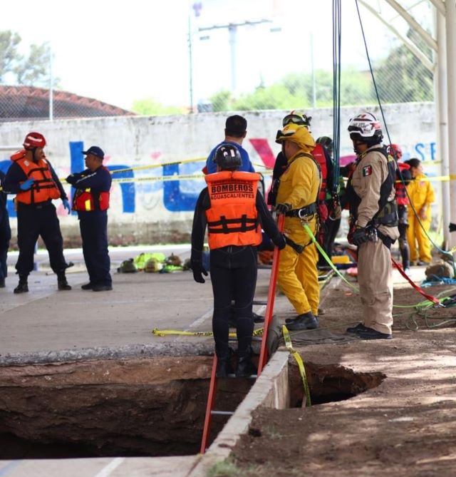 AGUASCALIENTES, AGS.- Tras la intensa búsqueda por parte de personal del área de Bomberos y Seguridad Pública Municipales, finalmente fue localizado el cuerpo sin vida del policía municipal Oscar León García, quien el viernes 26 de julio sufrió un accidente al caer al socavón que se formó en la colonia Ojo de Agua, al sur de la ciudad capital, cuando realizaba labores de supervisión en las afectaciones que había dejado la lluvia.