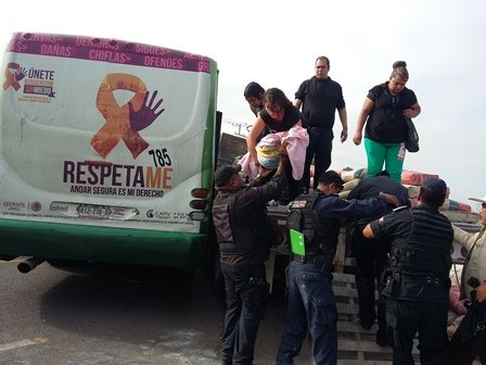 Ellas iban en el camión número 785, un Mercedes Benz tipo Marcopolo, color verde, modelo 2009, de la ruta 5 y con placas 012-210-A, conducido por José de Jesús López Ramírez, de 39 años y con domicilio en la calle Nicolás de Arteaga del fraccionamiento Fundadores.