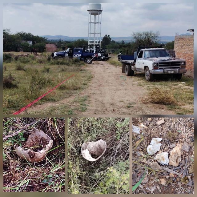 Con el apoyo de elementos de la Guardia Nacional y del Ejército Mexicano las madres buscadoras realizaron labores de inspección en un predio rústico en el punto mencionado y localizaron un fragmento de la parte superior de un cráneo así como otros huesos humanos.