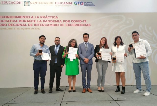 En el evento que estuvo encabezado por Adela Piña Bernal, titular de la Unidad del Sistema para la Carrera de las Maestras y los Maestros (USICAMM) de la Secretaría de Educación Pública (SEP), y Jorge Enrique Hernández Meza, secretario de Educación de Guanajuato, también se entregaron distinciones a docentes de Coahuila, Nuevo León, Querétaro, San Luis Potosí, Tamaulipas y Guanajuato.