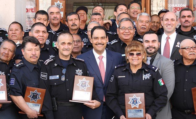 AGUASCALIENTES, AGS.- El presidente municipal de Aguascalientes, Juan Antonio Martín del Campo, entregó reconocimientos de antigüedad hasta por 39 años, a personal de la Secretaría de Seguridad Pública y Tránsito, por haberse desempeñado bajo los principios de legalidad, eficiencia, profesionalismo, igualdad, compromiso, certeza, respeto y honradez, poniendo en alto el nombre de la corporación capitalina.