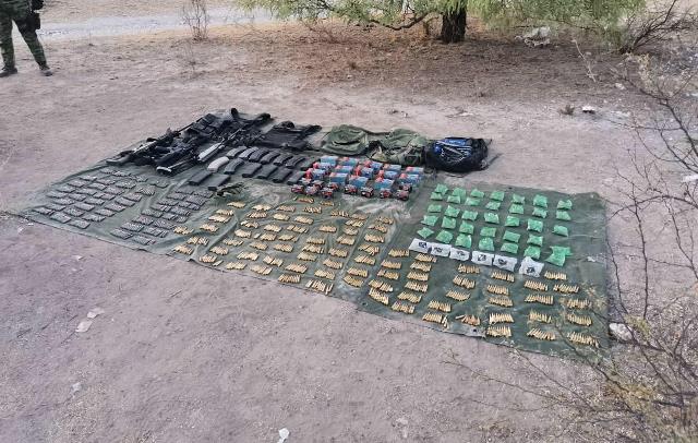 GUADALUPE, ZAC.- Efectivos del Ejército Mexicano aseguraron droga y un arsenal que unos delincuentes abandonaron en el municipio de Guadalupe.