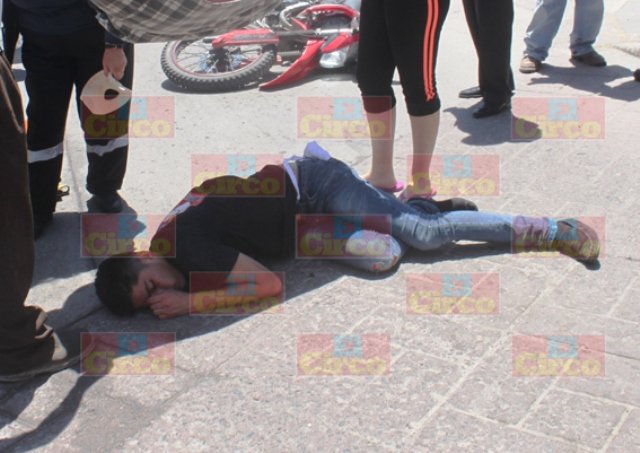 Por la tarde, Francisco de Jesús Núñez Espinoza, de 20 años, circulaba a presuntamente a velocidad inmoderada por la calle Victoria en una motocicleta tipo enduro en color rojo de la marca Veloci y al llegar a la calle Hidalgo no hizo alto y se impactó contra una camioneta que circulaba sobre la Hidalgo con dirección al Centro de la ciudad, la cual quedó con daños en la parte posterior derecha y con la llanta ponchada.