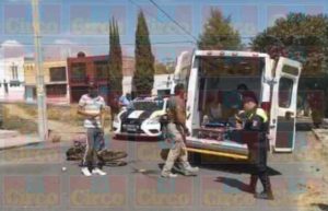 LAGOS DE MORENO, JAL.- Un joven que viajaba en una motocicleta resultó lesionado tras de que fue embestido por un automóvil, que terminó estrellándose contra unas jardineras y la fachada de un domicilio.
