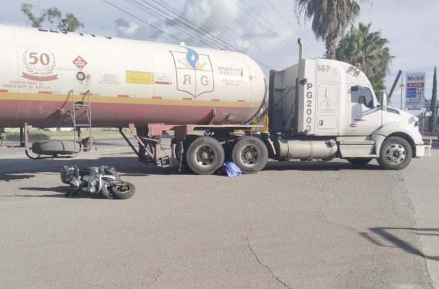 AGUASCALIENTES, AGS.- Un motociclista perdió la vida tras ser arrollado por un tráiler cargado con gas LP y cuyo conductor realizó una maniobra de ingreso a una estación de servicio.