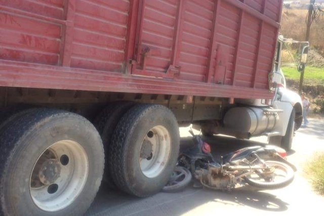 El joven fue proyectado fuera de la cinta asfáltica, mientras que su motocicleta quedó bajo las llantas del camión.